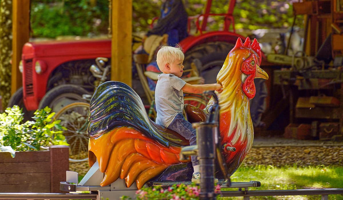 Hier wartet ein amüsanter Ritt mit unserer Fahrattraktion Wilde Gockel. Auf krähenden Hähnen geht’s ab durch den Bauernhof. Wir sind gespannt wieviele von den verschiedenen Bauernhoftieren bei der Fahrt entdeckt werden.